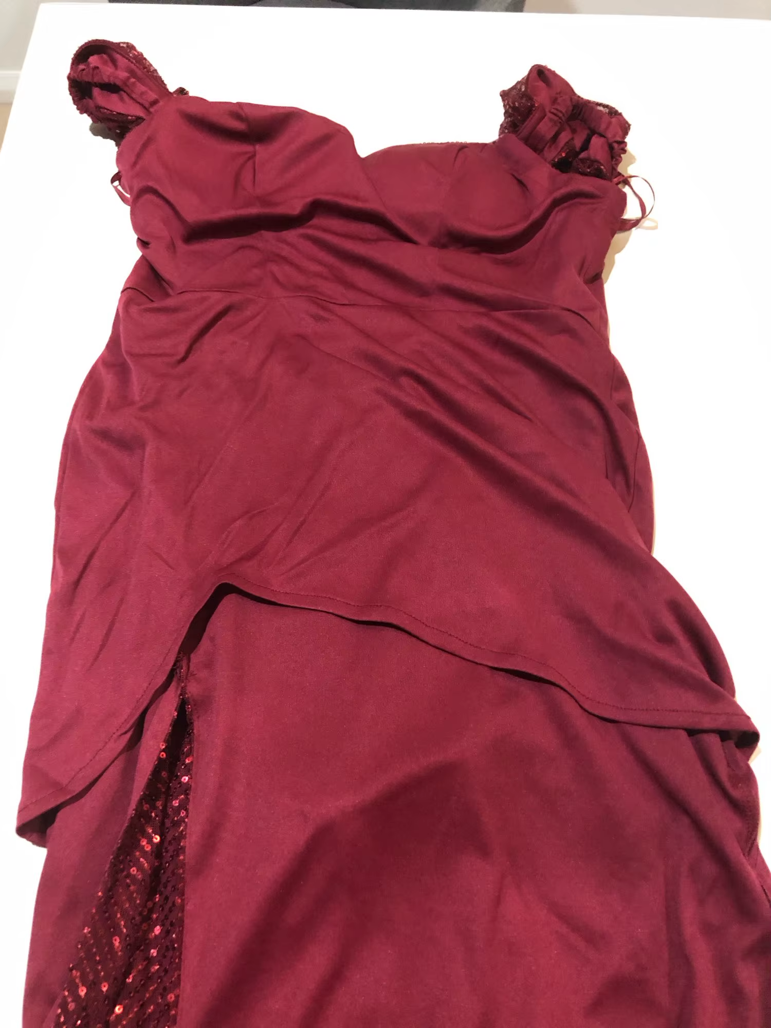 Un lavage à la main ou un nettoyage à sec est conseillé pour préserver l’éclat des sequins et la qualité du tissu.